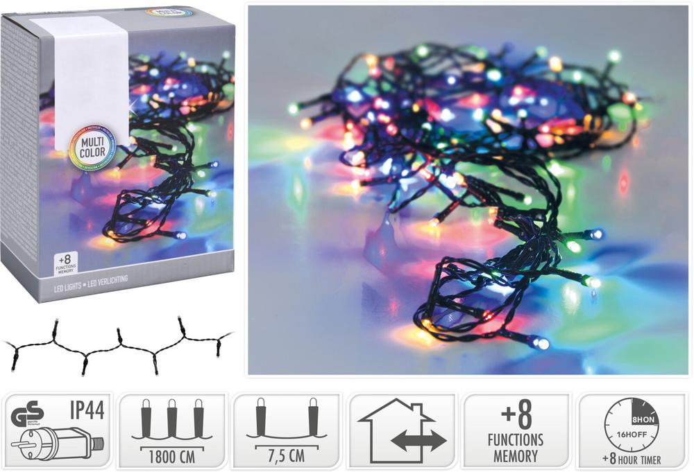 Vianočná LED reťaz 240 LED – farebná, 18 m, vonkajšia/vnútorná, časovač, funkcie