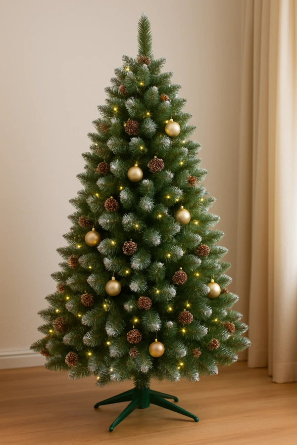Luxusný vianočný stromček s jemne zasneženým efektom, realistickým ihličím a stabilným plastovým stojanom. Perfektná vianočná dekorácia pre útulnú domácu atmosféru.