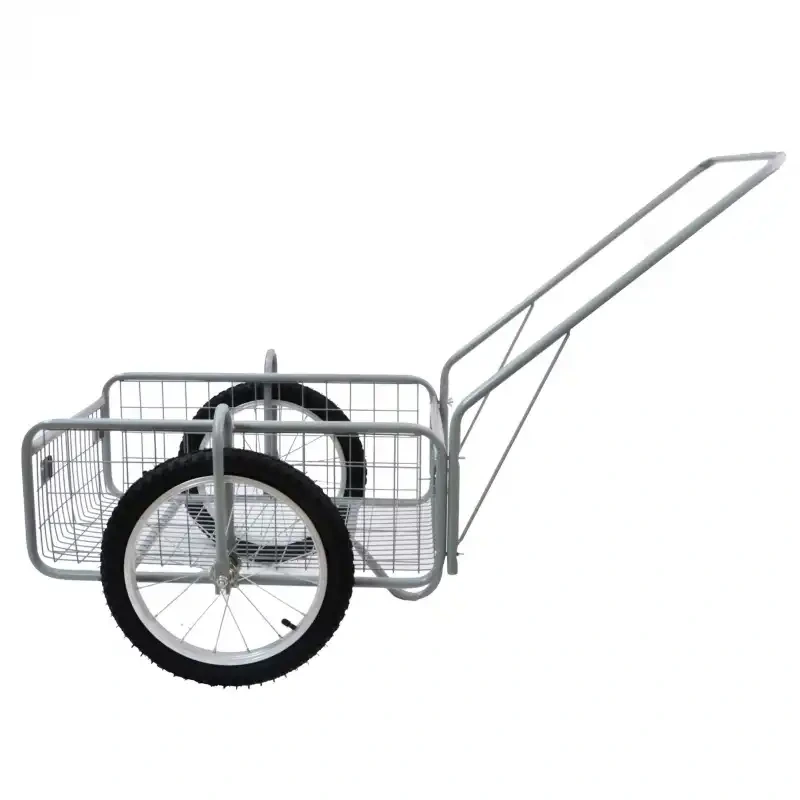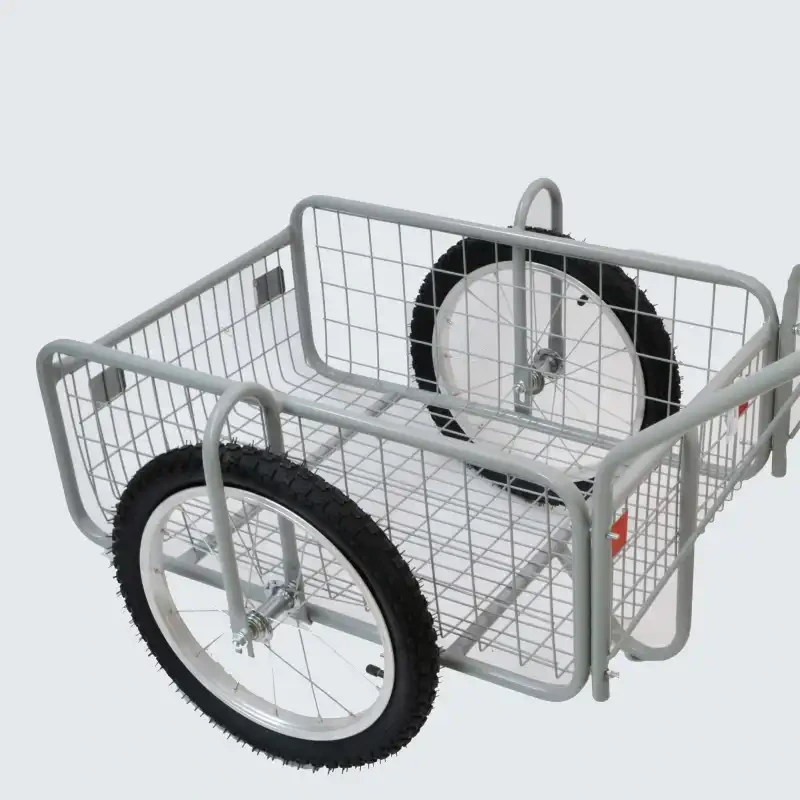 Oceľová konštrukcia s práškovým lakom odolá náročným podmienkam, pričom nafukovacie vypletané kolesá 16" zabezpečujú plynulý a stabilný pohyb.